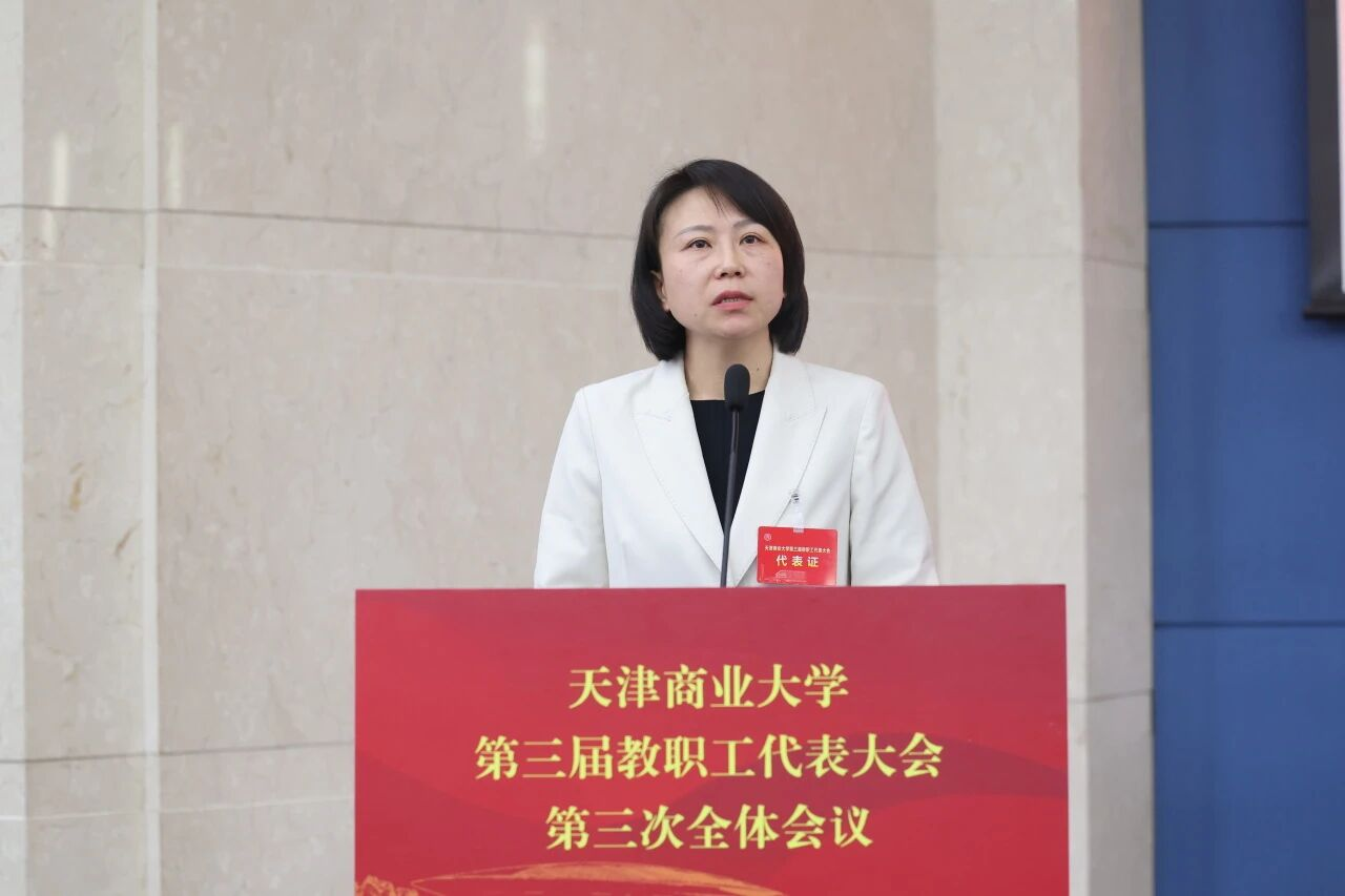 工会常务副主席王艳军作《天津商业大学教职工代表大会