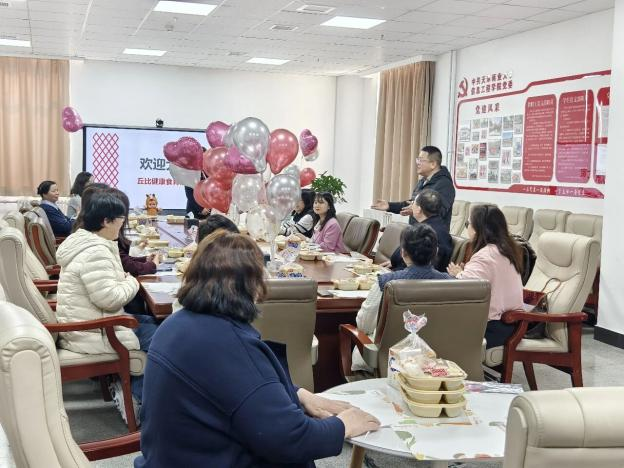 信息工程学院分会举办“轻食悦己,健康同行”丘比沙拉轻食DIY体验活动,学院班子成员为女教职工送上节日祝福,围绕女教职工身心健康与个人发展进行交流。