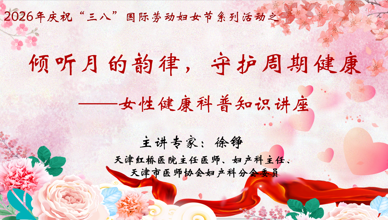 3月11日下午,天津红桥医院主任医师、妇产科主任、天津市医师协会妇产科分会委员徐铮以“倾听月的韵律,守护周期健康”为题,针对女性生理健康开展科普知识讲座,各分会积极组织,受到广大女教职工欢迎。